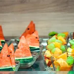 Sabahları açık büfe kahvaltı servis edilir. Tesise 250 metre uzaklıkta İtalyan yemekleri sunan Ae Do Rode, Sportyland gibi çeşitli restoranlar bulunmaktadır.